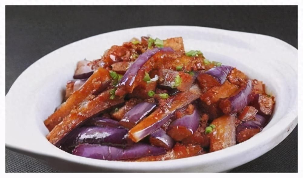 (4)倒入茄子段翻炒,茄子段炒软后倒入调好的芡汁;