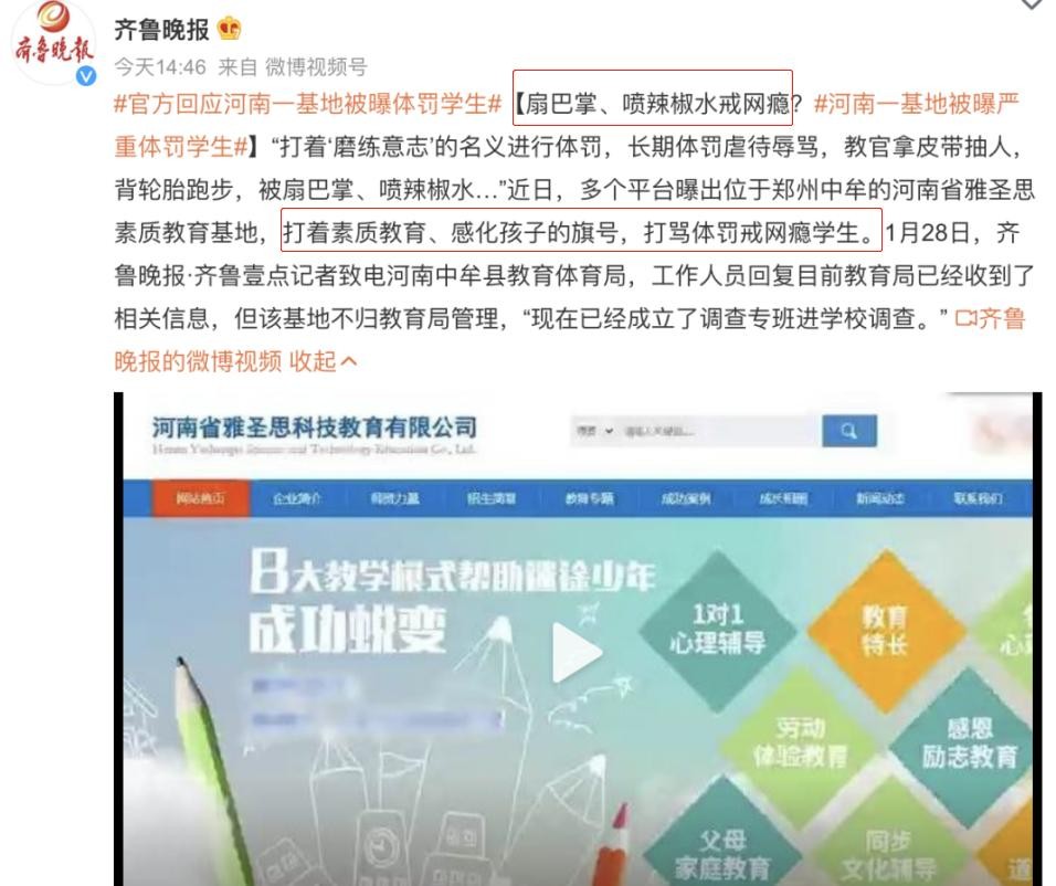 但就在同年,他的接棒者豫章书院被扒暴力执教,而就在前些天,河南雅圣思素质教育基地被曝……
