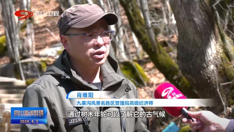 九寨沟风景名胜区管理局高级经济师 肖维阳:通过树木年轮可以了解它的古气候,当时的降水条件是怎样的,温湿条件是怎样的。色彩主要是从绿色到浅黄色,和水成景,通过它了解九寨沟更多的一种东西,算是一种自然密码。