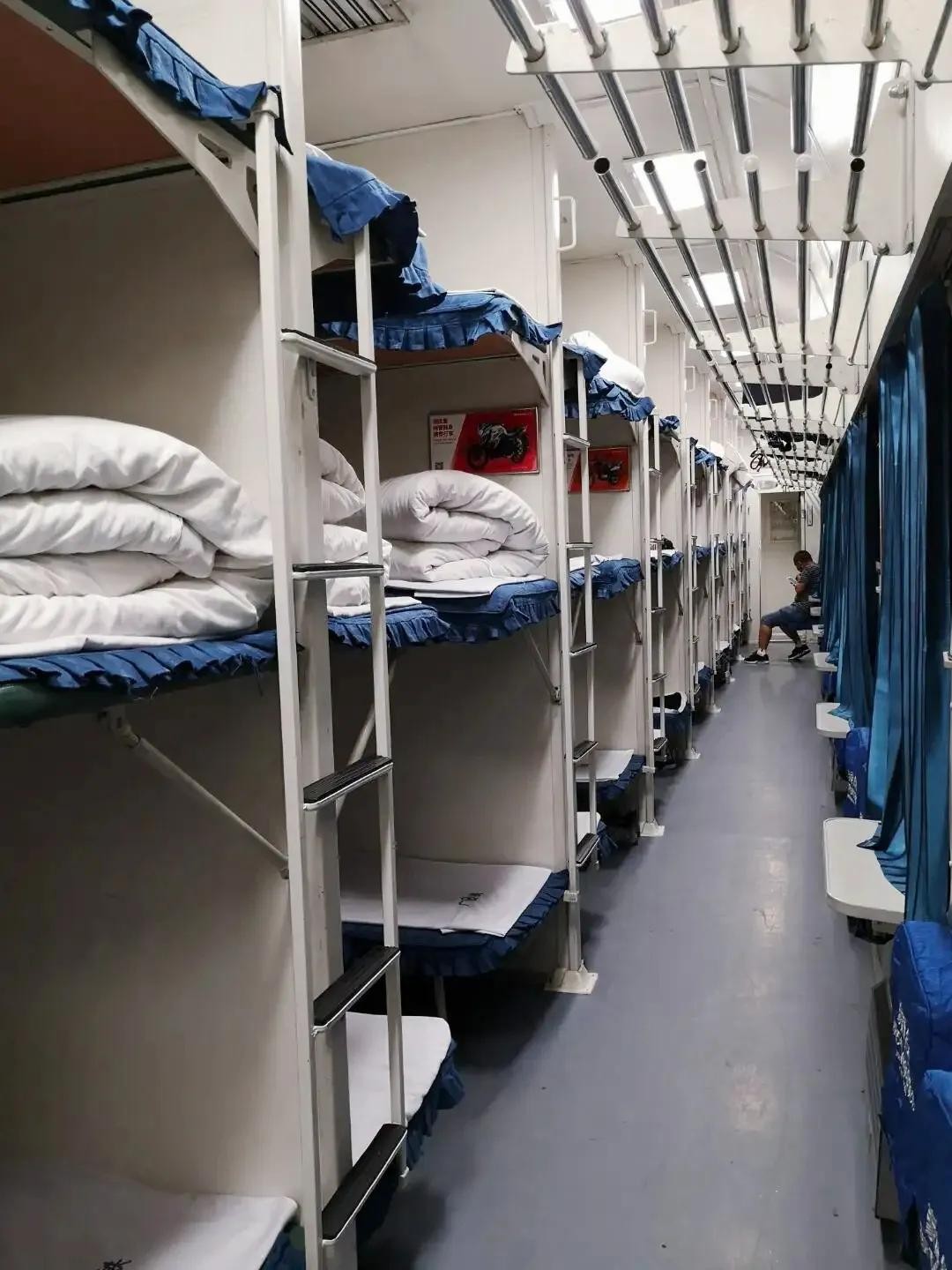 中铺的高度,能让人在铺位上坐直。比上铺舒适,比下铺安静,使乘客能够更加舒适地休息。然而,中铺的位置可能会使乘客感到有些摇晃,尤其是在行驶过程中。