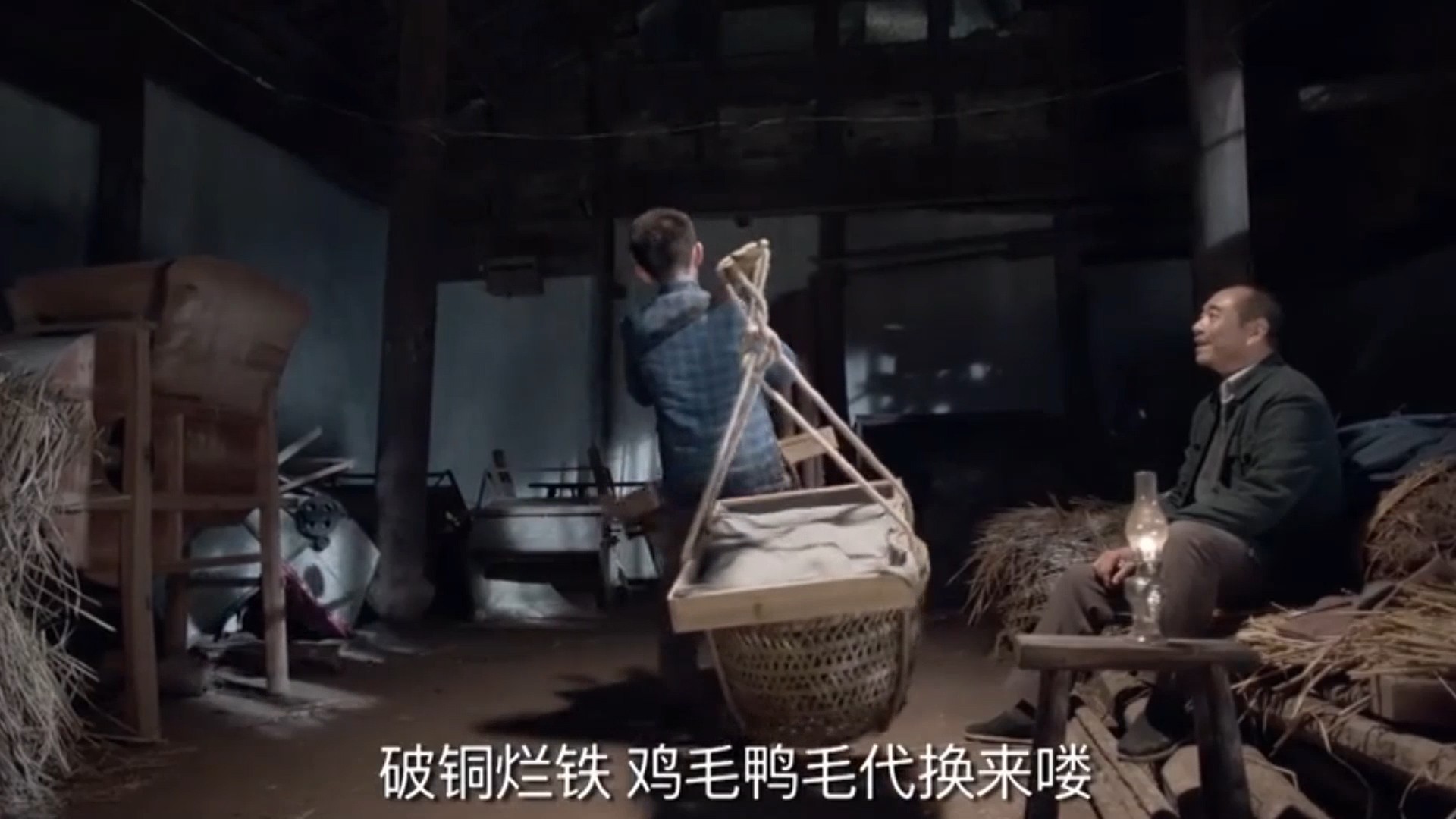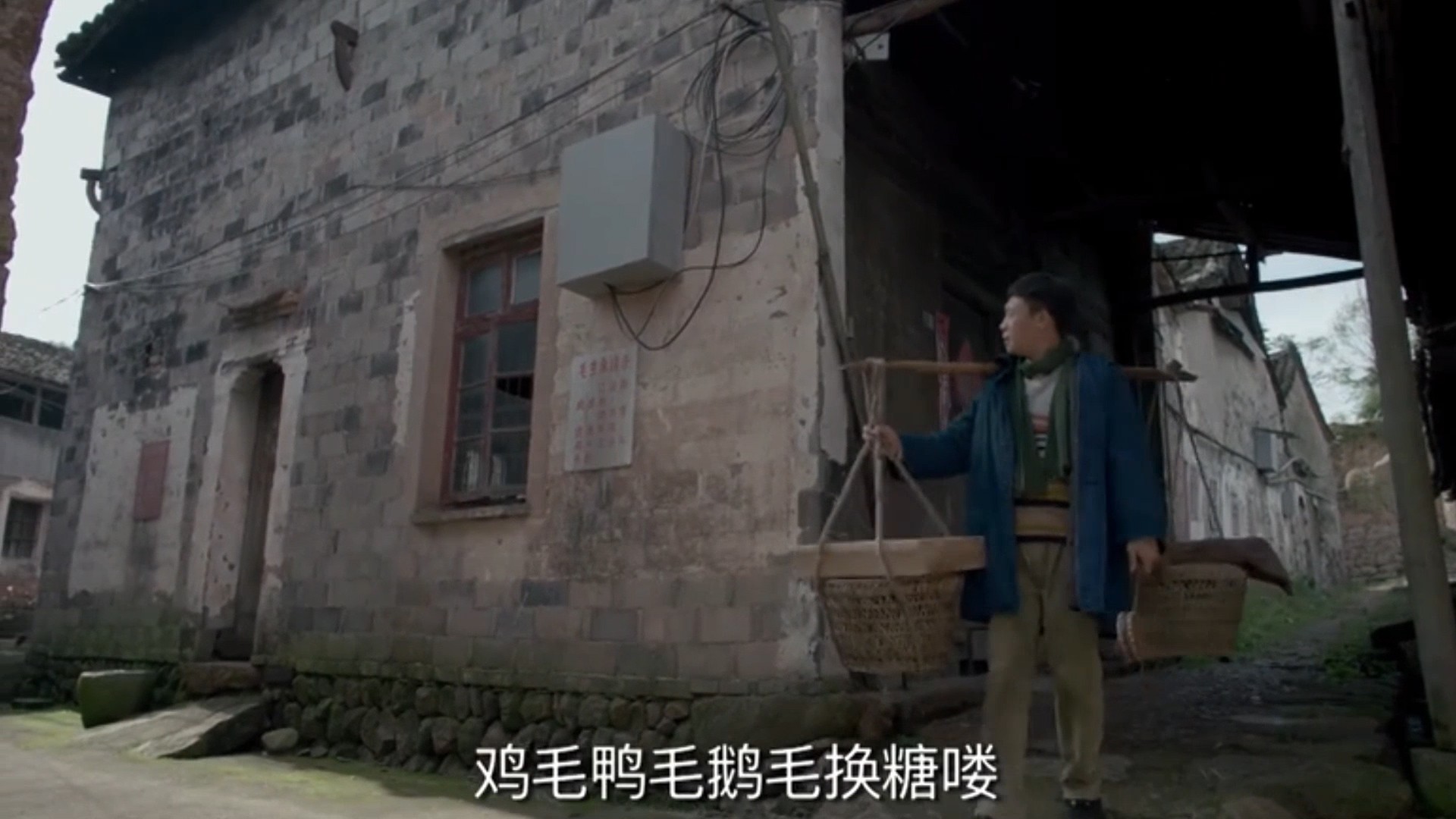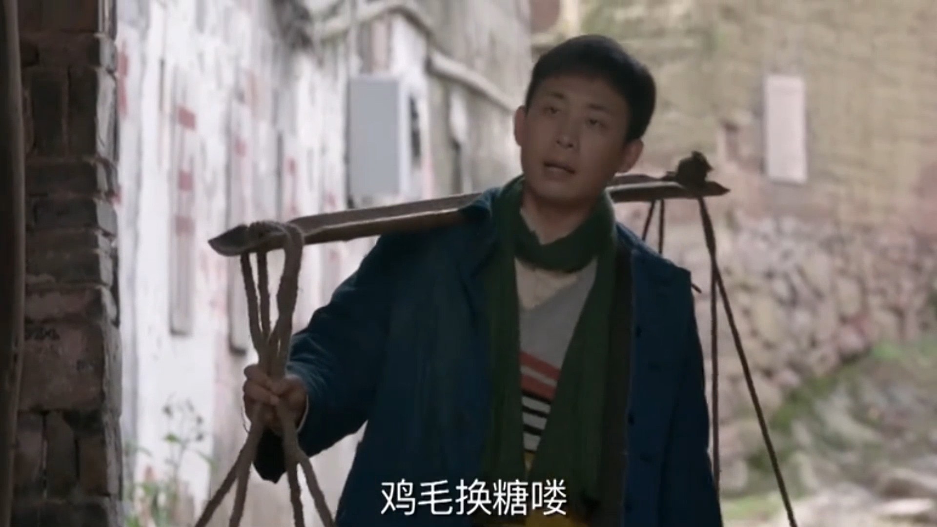 骆玉珠负责在桥洞下熬糖,陈江河就挑着扁担,担着熬好的糖,喊着“破铜烂铁,鸡毛鸭毛代换喽”,走街串巷鸡毛换糖。