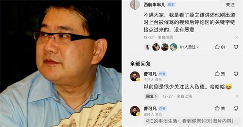 对于这个事件,我们可以看到一些有趣的现象。首先,薛之谦并没有在节目中直接揭露主持人的身份,但这个事件在网络上引发了广泛的猜测和争议。其次,曹可凡虽然回应了网友的留言,但依然回避了对薛之谦事件的明确评论,强调了自己是一名媒体人。