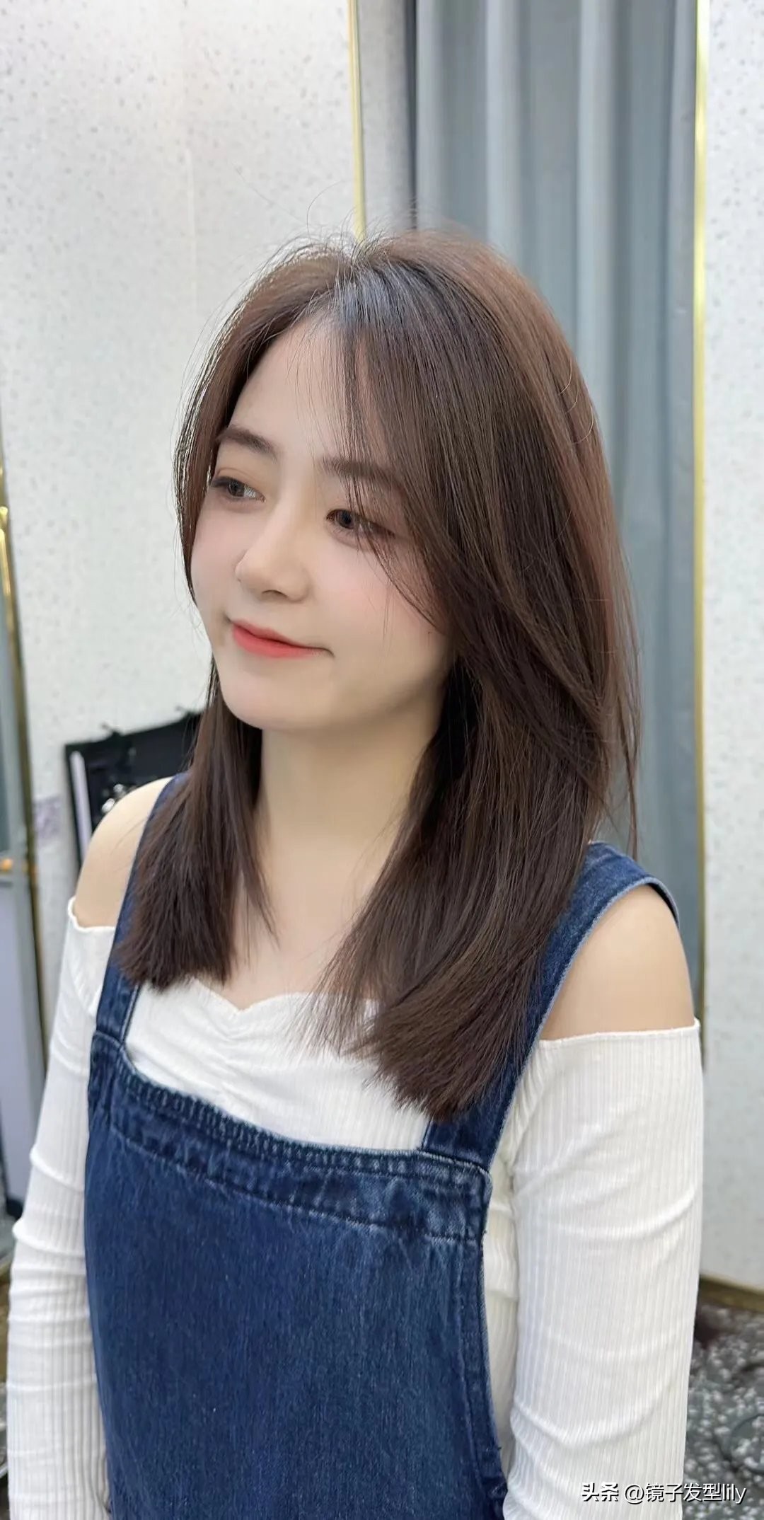 中长发配上深棕发色效果也不错,尤其是再剪个八字刘海,把整个五官衬托得特别的完美,知性又大方,美得让人无可挑剔。