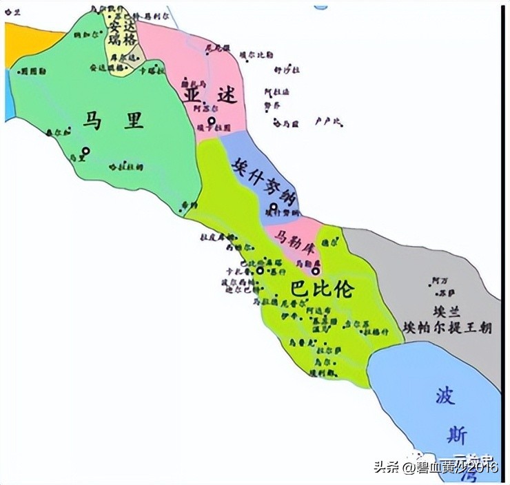 ,约公元前1792年-前1750年在位,大致相当于我国夏朝中后期,古巴比伦第6位国王)。汉谟拉比是一位具有雄心壮志的君主,他的目标是效仿萨尔贡一世,统一整个美索不达米亚。于是他选择远交近攻,先弱后强的战略,先向最强的亚述称臣,然后联合拉尔萨夹击伊辛。消灭伊辛后,汉谟拉比又拉拢北方的马里王国于公元前1764年,顺利吞并埃什努纳王国。公元前1762年,他采用截断水源的方法灭掉了拉尔萨。公元前1759年,灭马里。公元前1757年,灭亚述。亚述人被迫北迁至两河上游。史学界将两河上游称为亚述,中下游统称巴比伦就是这么形成的。