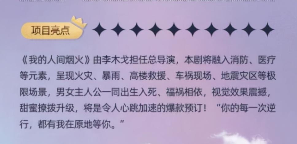 前面也提到过,在这部剧中,还会加入一些元素,以及各种惊险刺激的场景。不管是车祸现场还是高楼救援等,也都表明,这部剧除了爱情之外,还是一部正能量题材的都市剧,说实话还是非常令人期待的。