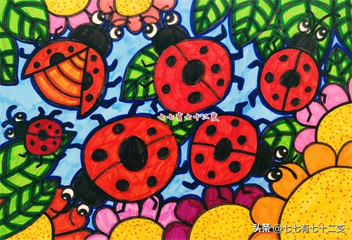 七星瓢虫创意美术|七星瓢虫创意画|一起来画画七星瓢虫儿童画吧。
