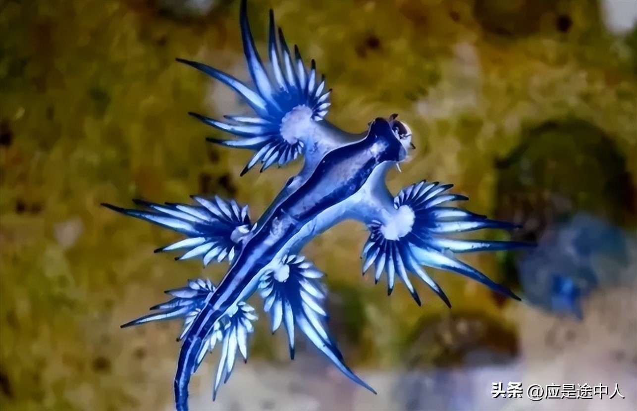 07:蓝龙。蓝色海蛞蝓,长相绚丽奇特,能够漂浮在海面上