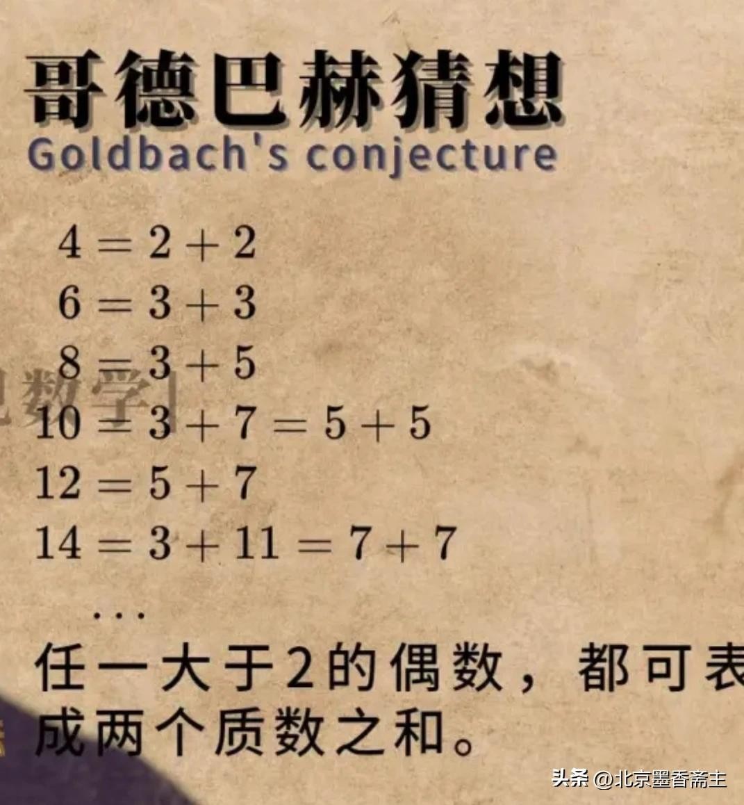 哥德巴赫猜想是个谜,一个著名的数学未解之谜。由普鲁士数学家哥德巴赫(Goldbach’s conjecture)在1742年提出的、关于质数和偶数关系的一个数学猜想。即:任何一个大于2的偶数都可以表示为两个质数之和。简称(“1+1”)。