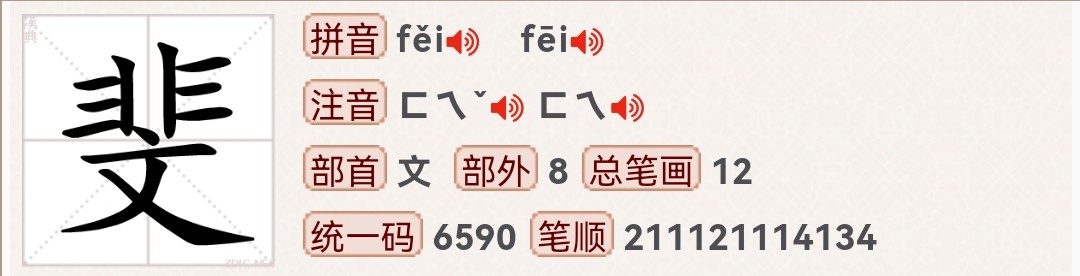 朋友们好,今天学习汉字"斐"不念wén,斐怎么读,什么意思?一起来认识一下吧!