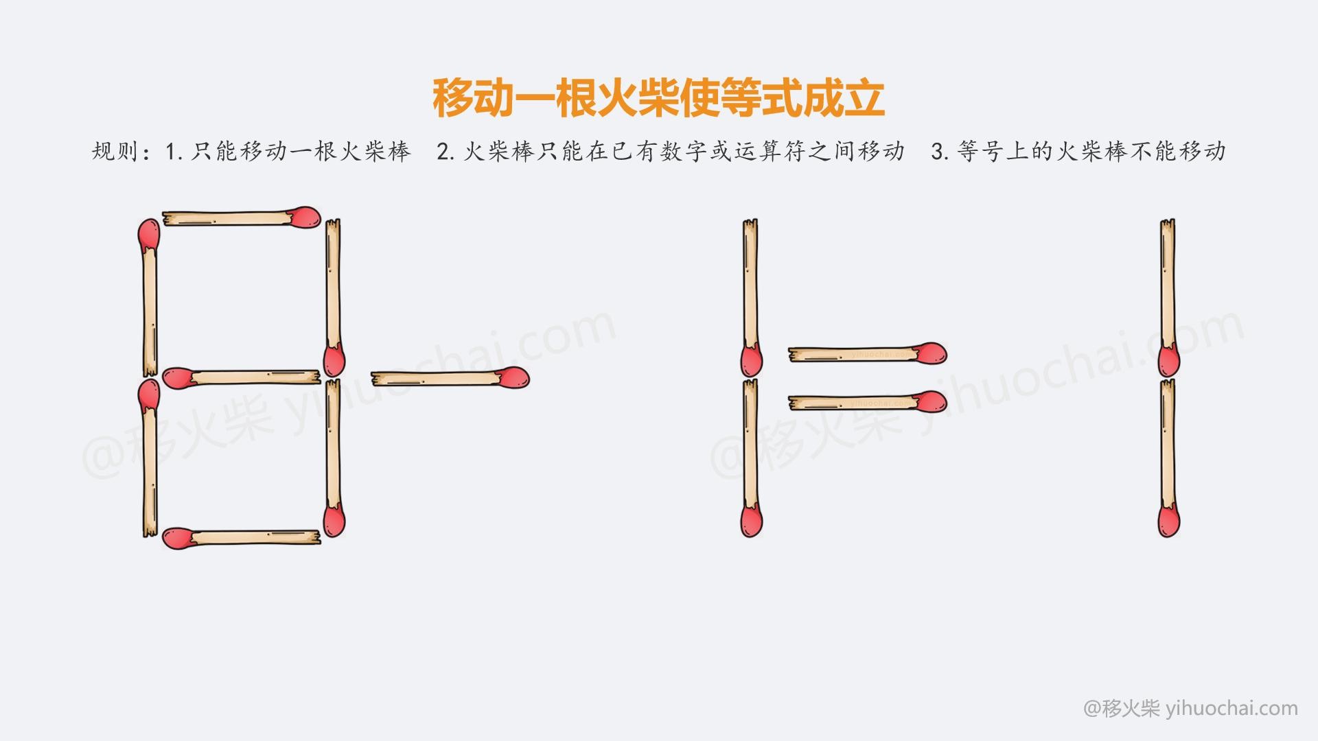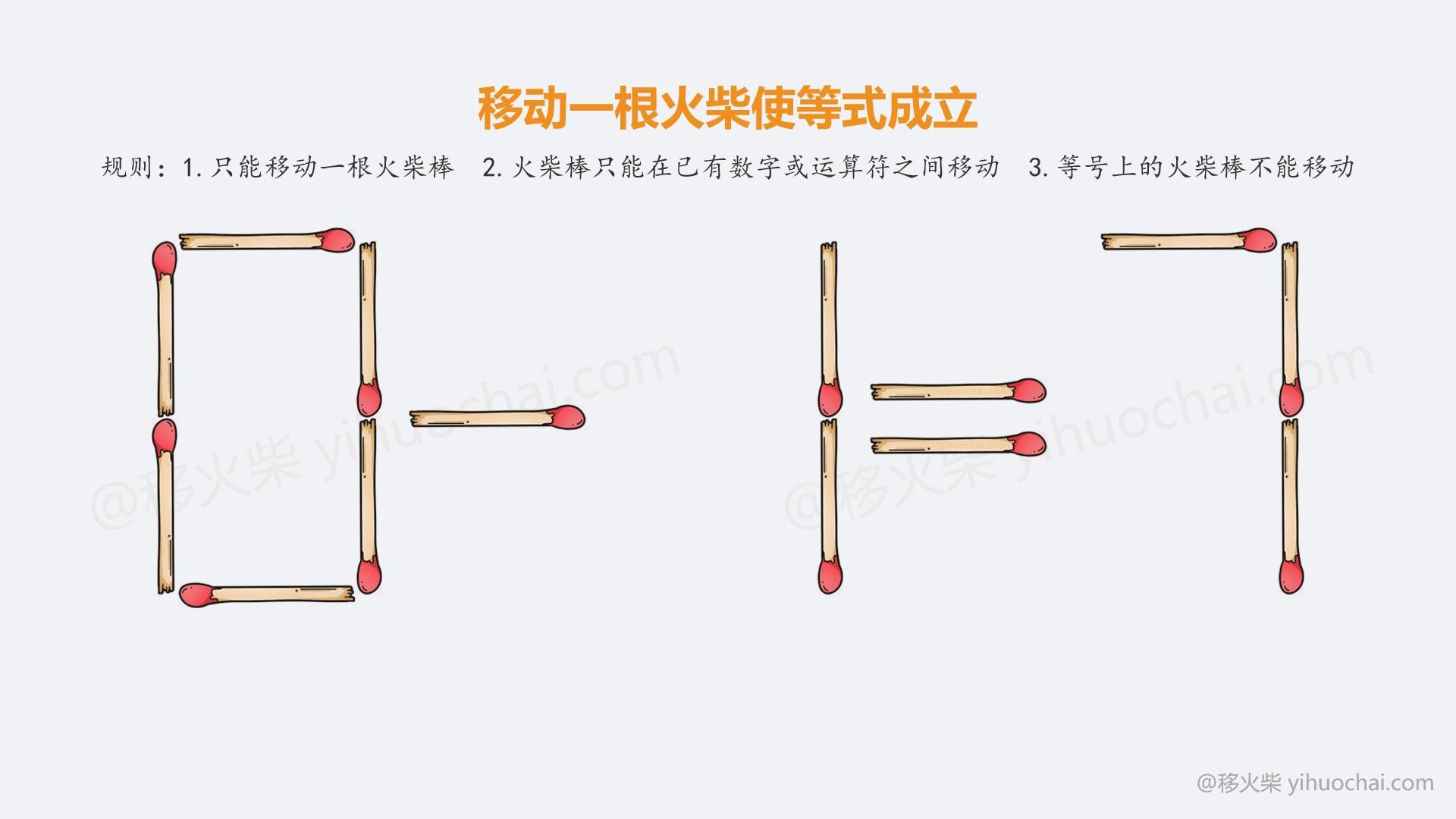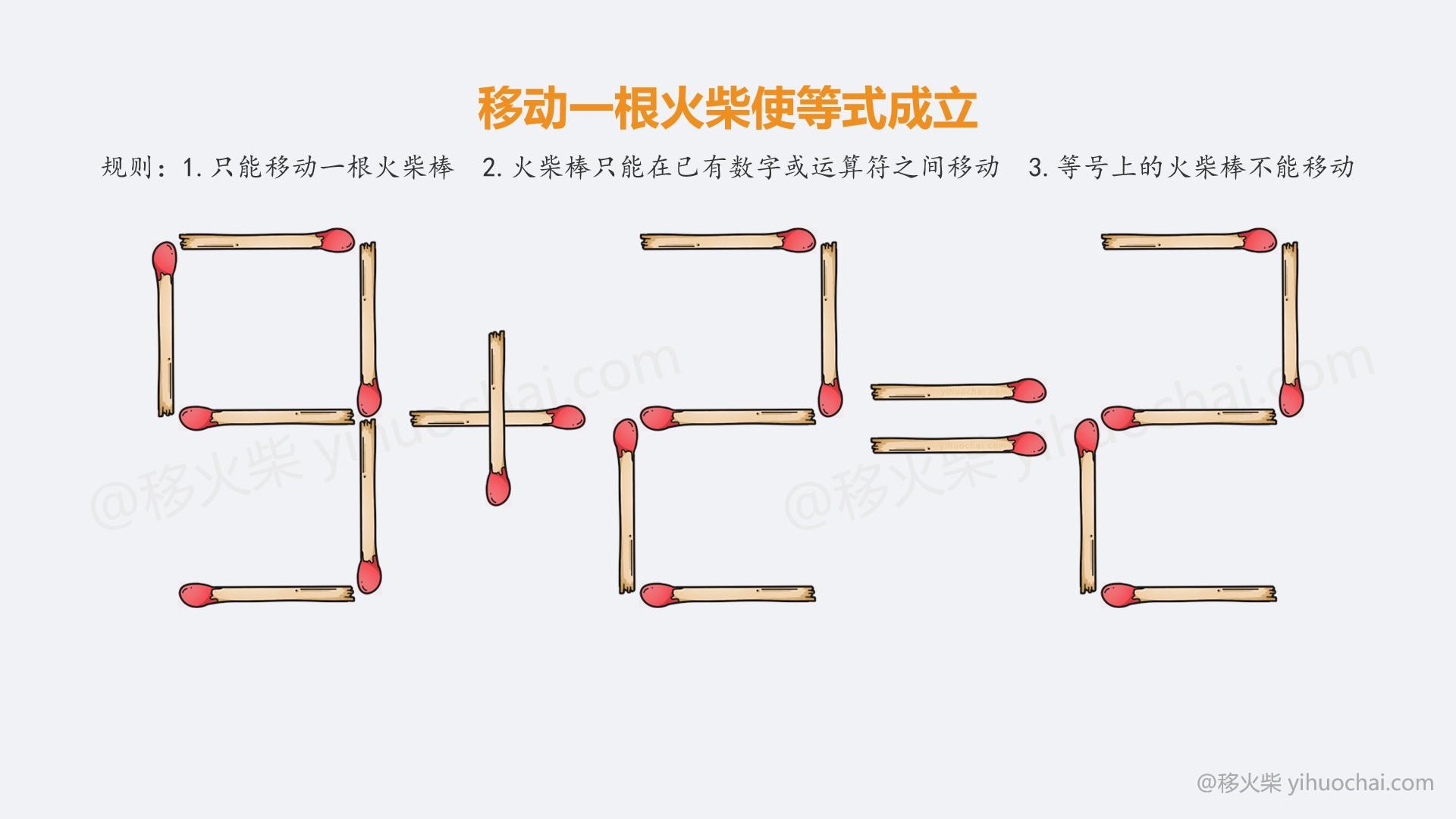 下面是 10个移动火柴使等式成立的题目,挑战一下你能答对几个!