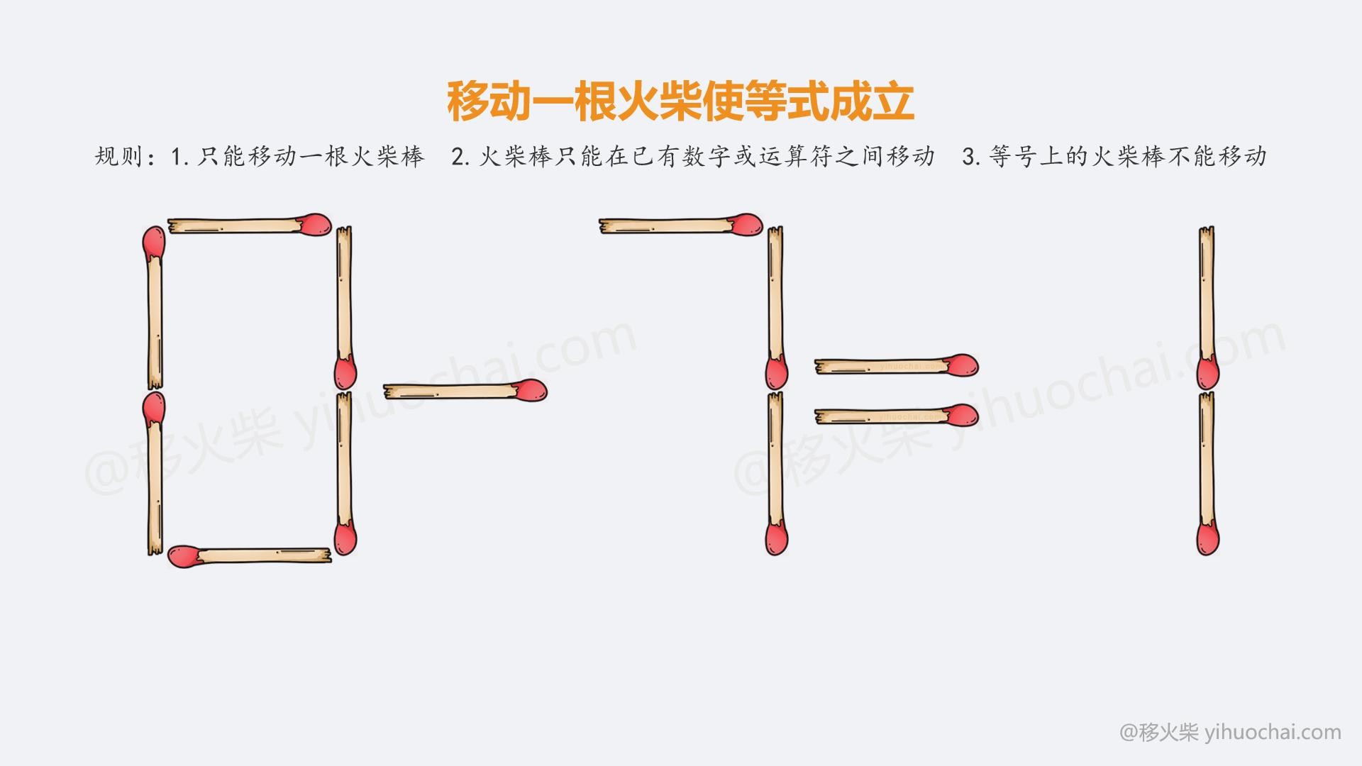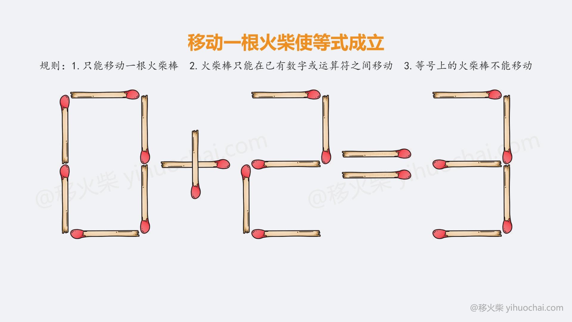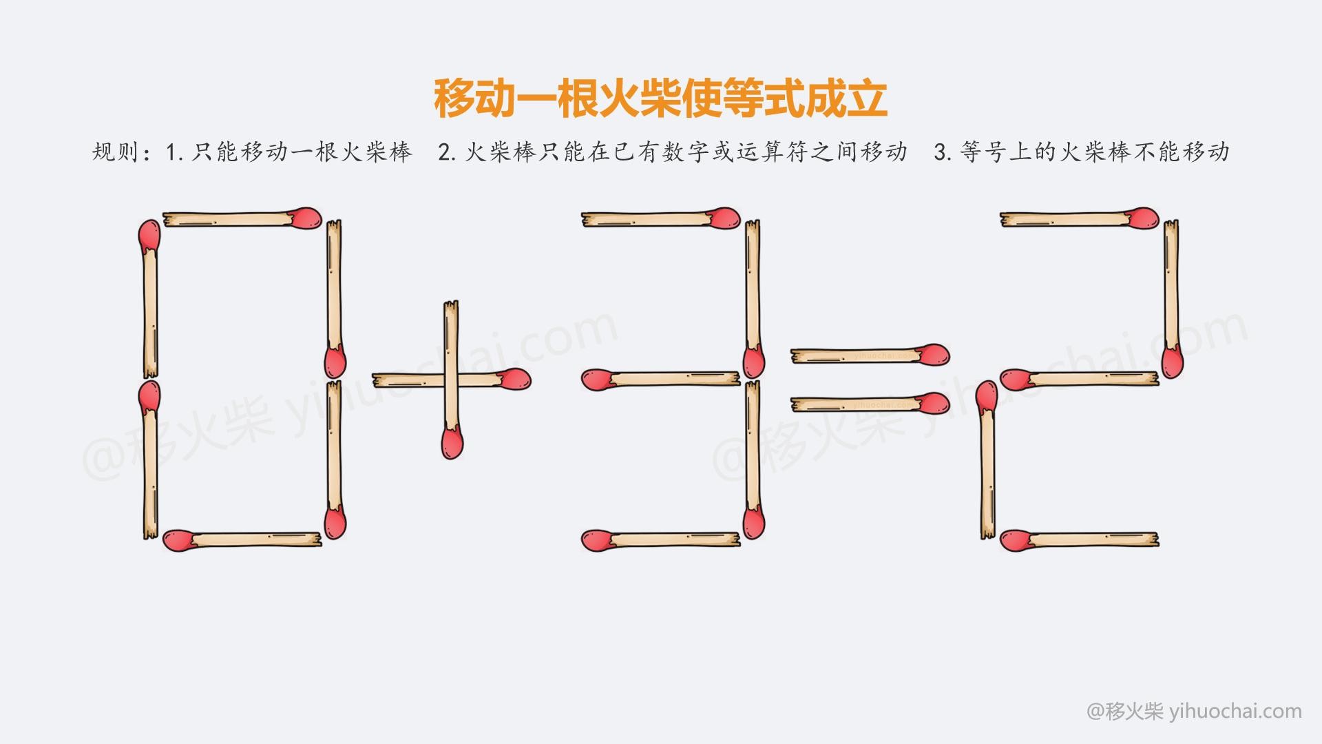 下面是 10个移动火柴使等式成立的题目,挑战一下你能答对几个!