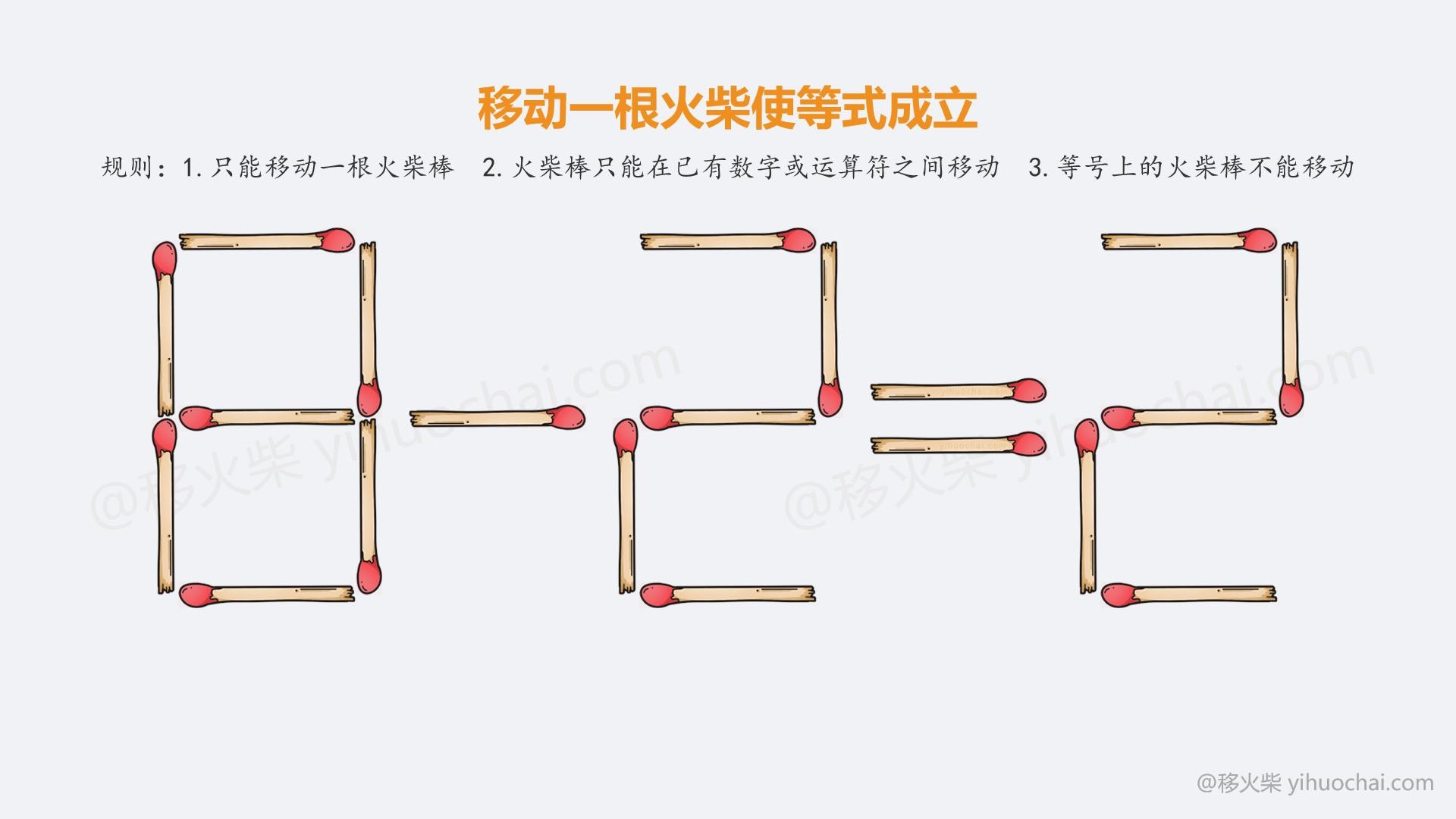 8-2=2 怎么移动一根火柴棒使等式8减去2等于2成立呢?