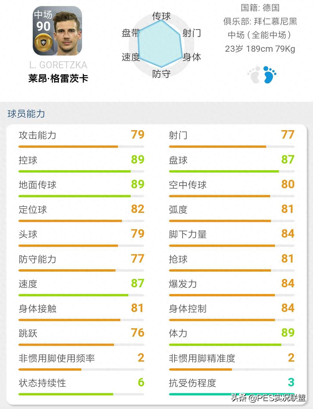 无论是旧版引擎还是新引擎,格雷茨卡都是当仁不让的最强金球中场!拉比奥?也不错,但没有格雷茨卡全面。作为典型的六边形战士,进可攻退可守的格雷茨卡堪称全能,比他进攻好的没他防守好,比他防守好的没他进攻强,虽然各项数据都不是顶级,但胜在均衡,游戏中唯一与他相近的是比达尔,但显然模型上格雷茨卡更好。