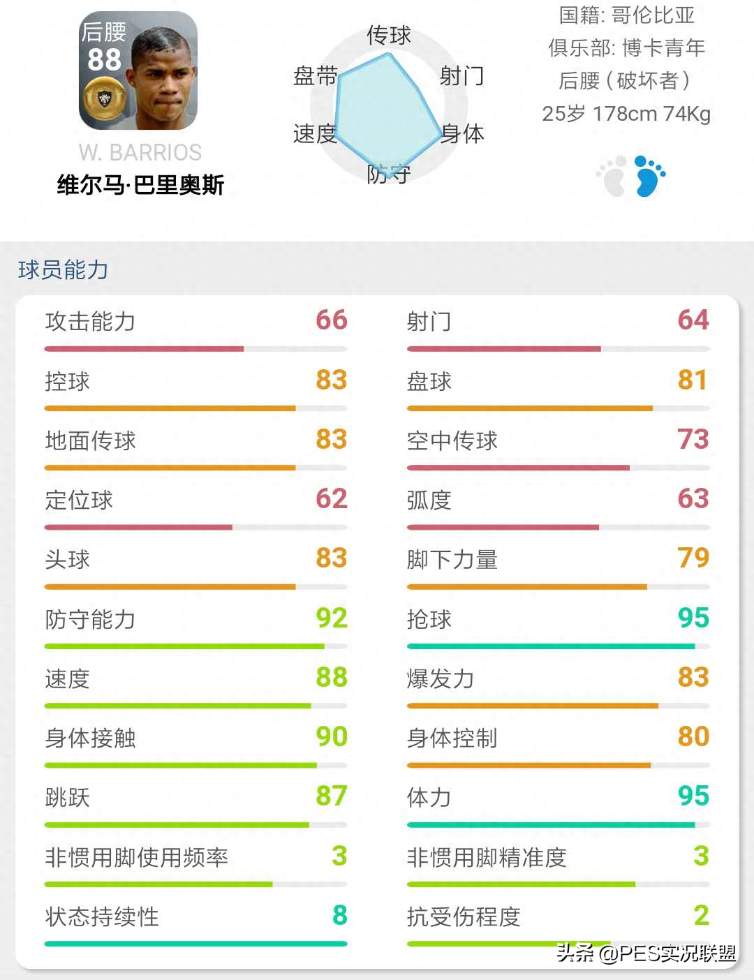 网易推出新引擎之前,19B的数据就已经公布,阿斯皮利奎塔大削,当时所有人都在问,新引擎该用谁打右后卫!答案是巴里奥斯!默认位置为后腰的他,客串右后卫评分+1。巴里奥斯横空出世以后,直接碾压传奇萨内蒂,胜率仅次于客串右后卫的马尔蒂尼,排名第二。究其原因,在于巴里奥斯既有防守又有速度,身体对抗强硬且体力充沛跑不死,外加盯人、头球、战斗精神三大神技加持,想不毕业都难!