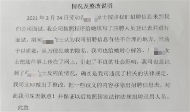 面对这一问题,有记者通过招聘软件了解到该公司的电话,与该公司沟通,公司负责人表示填写恋爱经历只是为了考察应聘者的情商而已。这样的招聘内容我们不用想,也知道是涉及隐私,这样的招聘手法是非常欠妥的,毕竟恋爱与公司的业务没有任何的关系,而且恋爱经历是属于个人隐私,可以受到法律保护的,任何人都不得泄漏,侵害他人的隐私权。