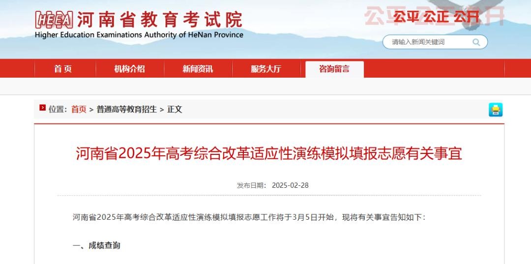 河南省2025年高考综合改革适应性演练模拟填报志愿工作将于3月5日开始,现将有关事宜告知如下: