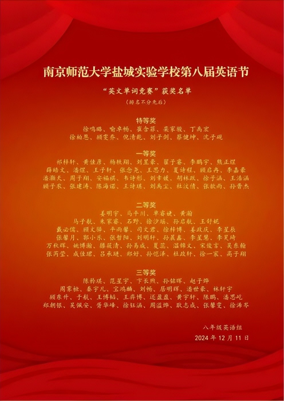 南京师范大学盐城实验学校第八届英语节华丽落幕
