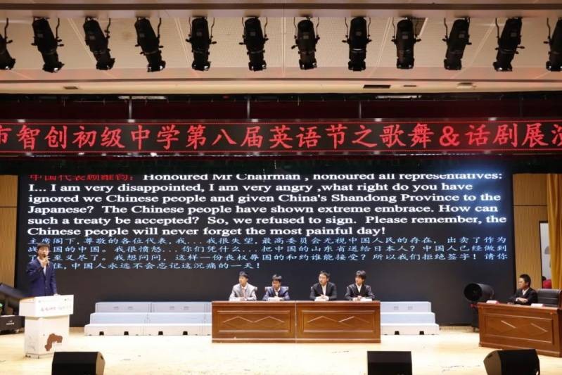 八6班的歌舞表演Waving Flag充满了力量与美感,英语老师兼班主任的加入更是为他们的表演增添了亮点。他们的话剧Paris Peace Conference则展现了我国外交官顾维钧在巴黎和会上的英勇表现,提醒吾辈当自强。