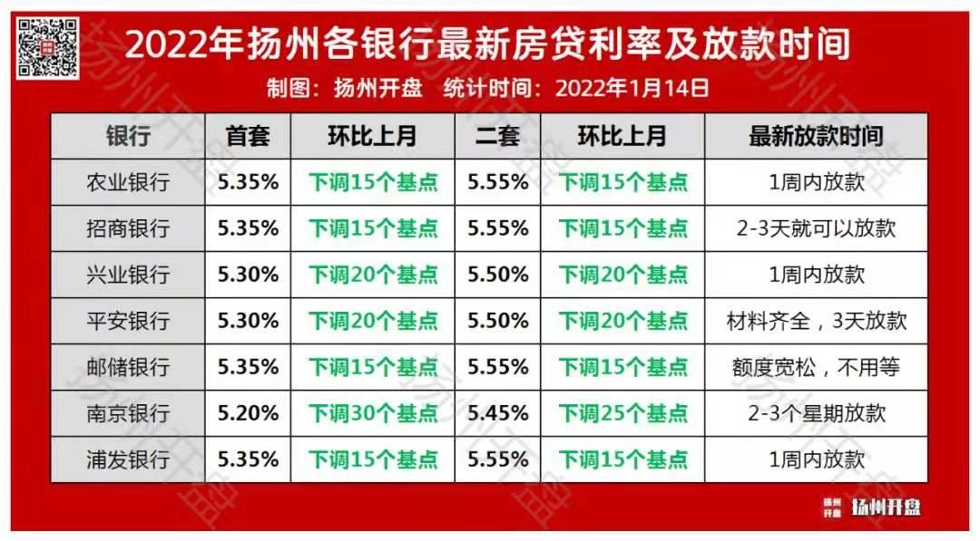 1月份数据统计发现,扬州主流银行房贷利率均有下调,放款速度明显加快。有业内专家预测,房贷利率有望进一步下调,买房成本会再度降低,刺激楼市回暖,届时又将继续刺激一波买房人。