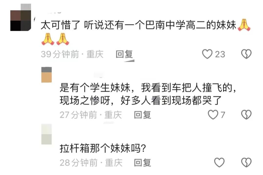 那个拉着行李箱的都说是位学生,正在读高二,直接被车撞飞了,现场的惨状比我们想象的还要严重,很多人都吓哭了。