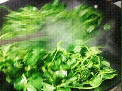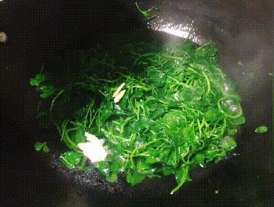 6、锅中倒入适量油,倒入秧草煸