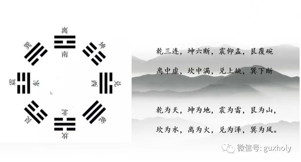又叫三画卦,共八个,乾、坎、艮、震、巽、离、坤、兑。