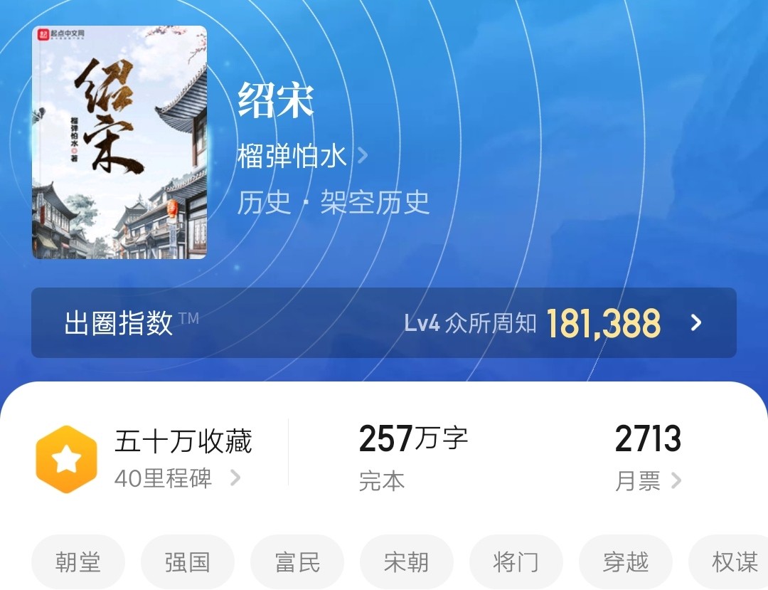 读《绍宋》,不是正常读爽文的感觉,而是不甘、心酸,绍宋位面忠臣良将越被肯定和保护,对比本位面历史就越不甘。