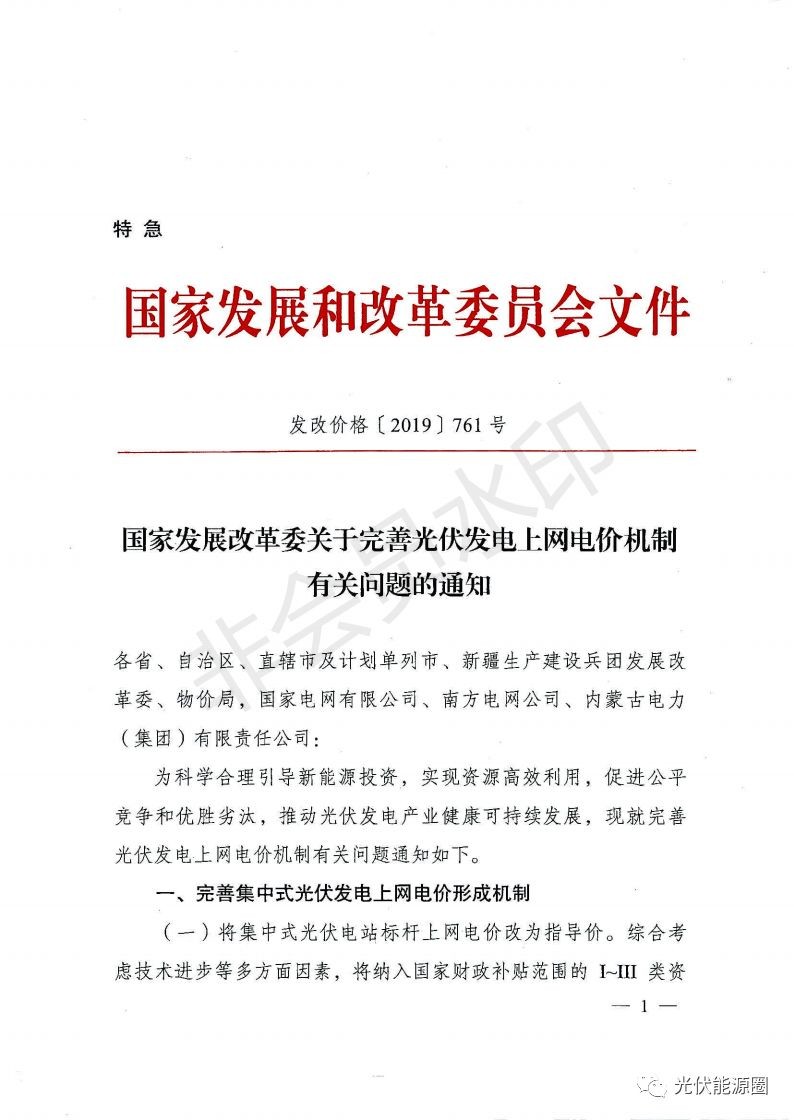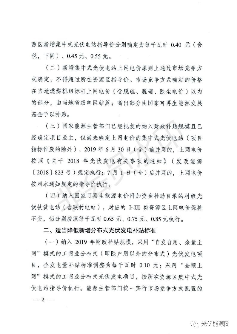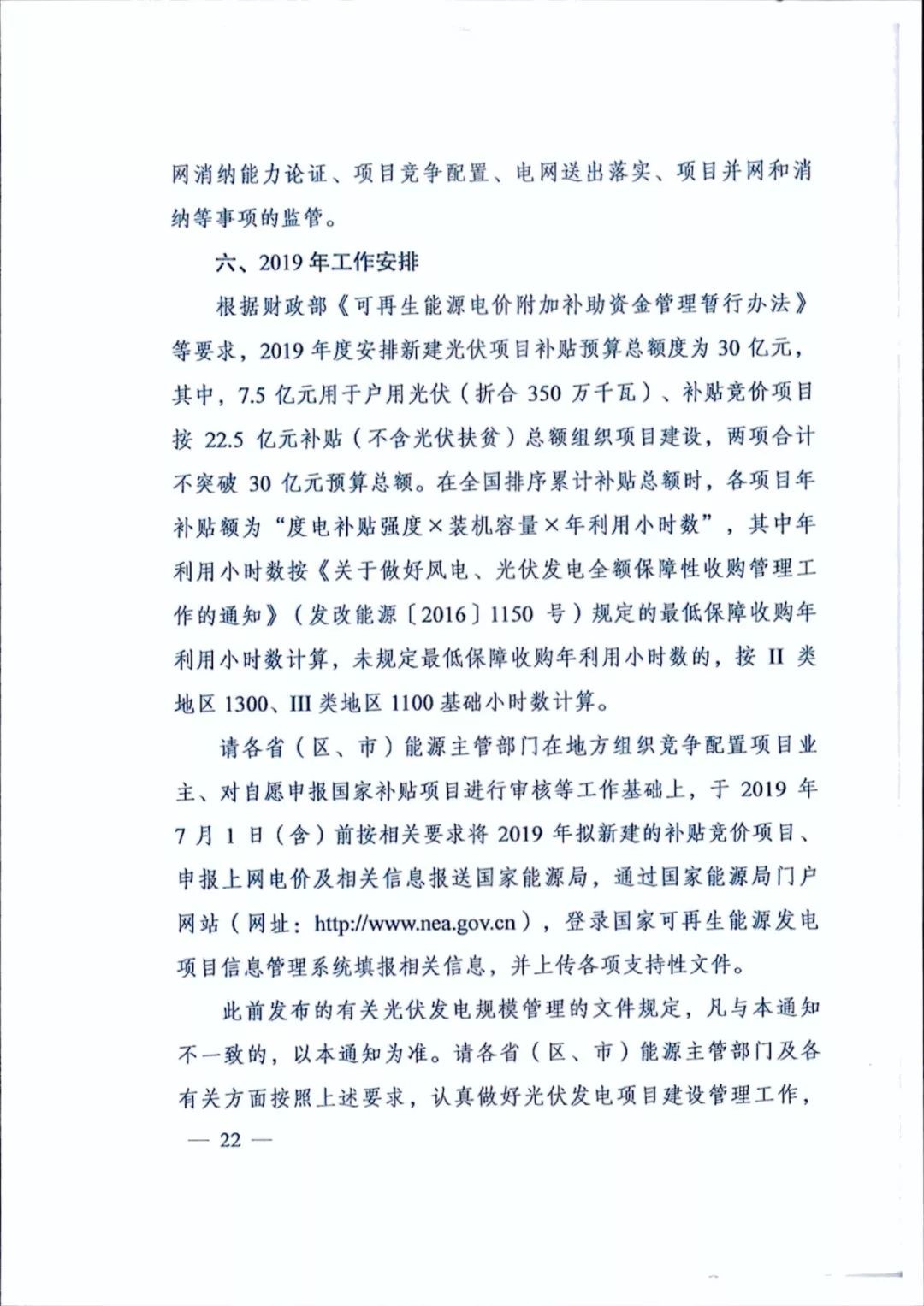 《国家能源局关于2019年风电、光伏发电项目建设有关事项的通知》
