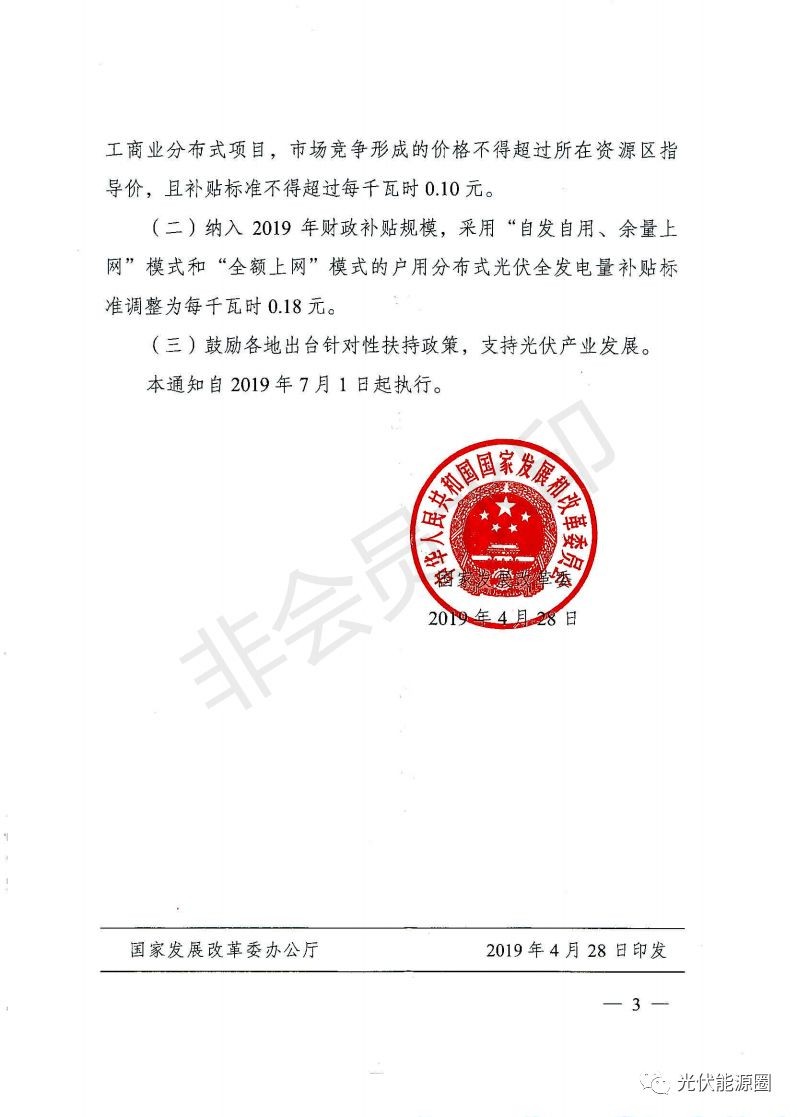 2、《国家能源局关于2019年风电、光伏发电项目建设有关事项的通知》,明确了2019年补贴总规模30亿,户用7.5亿(合3.5GW),该政策于5月28日下发。