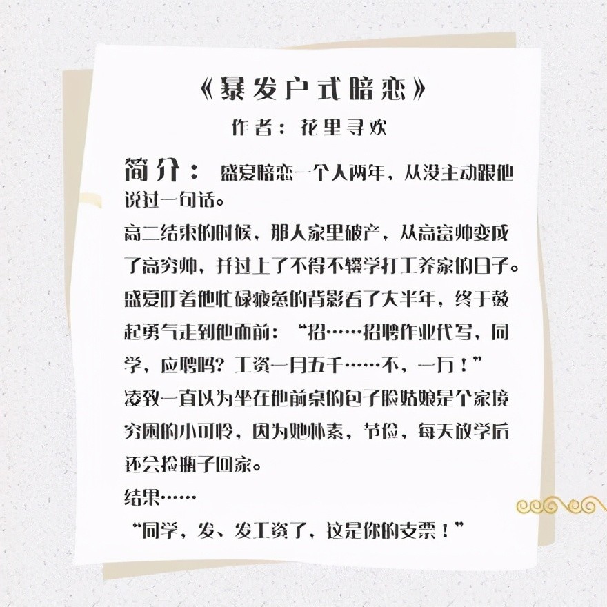 2.《暴发户式暗恋》作者:花里寻欢