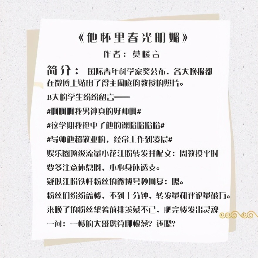3.《他怀里春光明媚》作者:莫暖言