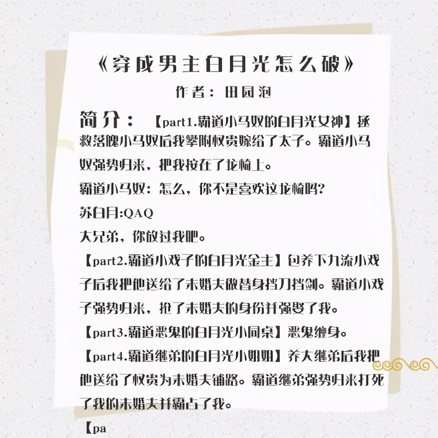 5.《穿成男主白月光怎么破》作者:田园泡