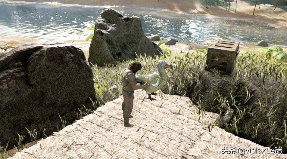 驯服之后的渡渡鸟还可以抱起,抱起后生存者跑得比较慢。前期生存者的背包负重低、腐烂速度快,训只渡渡鸟可以暂存一下物品,不过它的负重也低、也可以当一个小冰箱使用(这个效果方舟大多数生物都具有),放它背包里的生肉和浆果腐烂时间会久一点,生存者身上的腐烂时间10分钟,放渡渡鸟背包里腐烂时间是40分钟。驯服后的渡渡鸟可以命令它攻击生物,但是伤害嘛~~~很低,欺负下水龙兽还是可以的。渡渡鸟身上还能安装C4炸弹,吹口哨带到目标附近引爆,因为是小动物还能被大型动物践踏造成较高伤害,可以充当预警哨点,总的来说就是炮灰鸟。