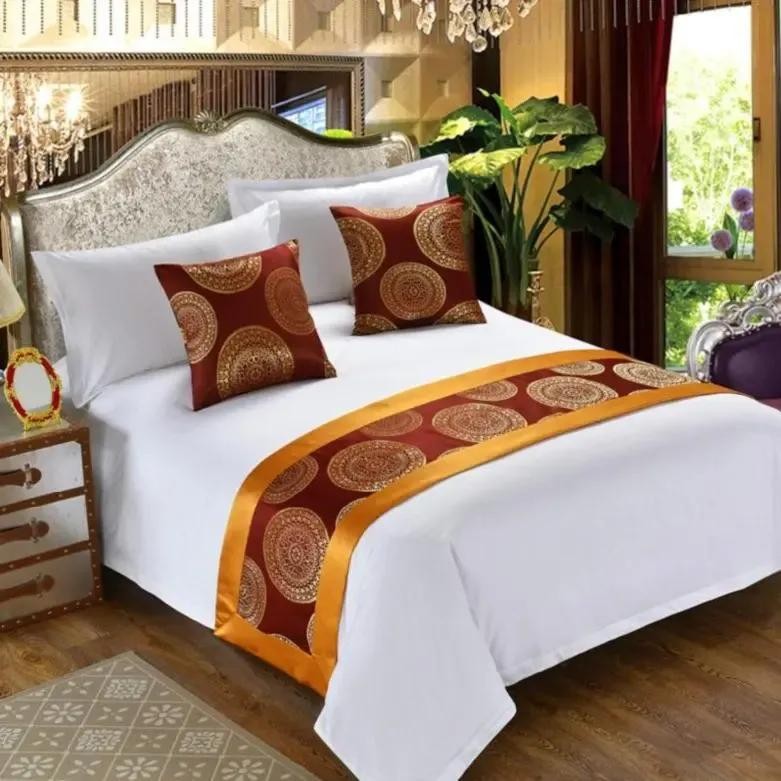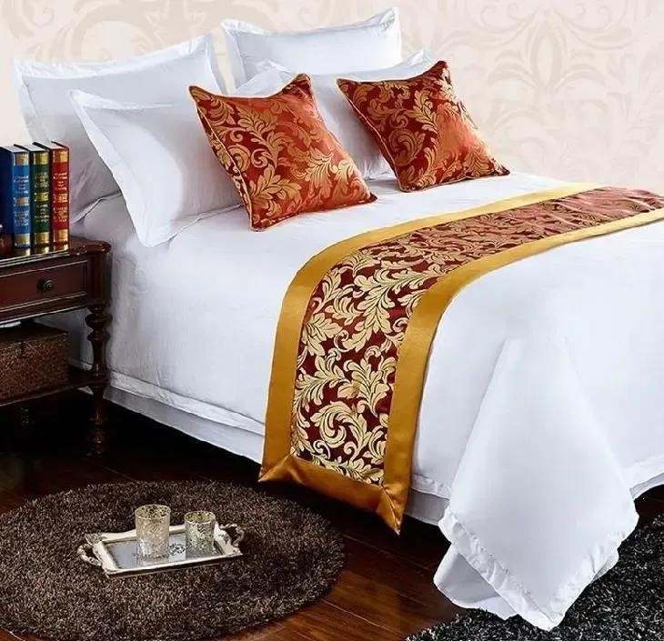 除了保护床单和增加舒适度外,床旗还承载着一种文化与艺术的韵味。它的颜色、图案和质地往往与客房的整体风格相匹配,为客房增添了一份独特的韵味与格调。有的床旗上绣着精美的花卉图案,有的则印着简约的几何图形,每一种都展现着设计师的匠心独运。