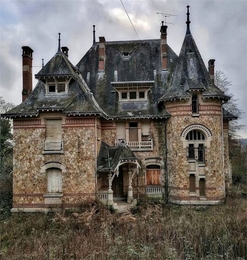 11.一座房子的门廊阴影诡异,仿佛一张长着尖牙的巨口。