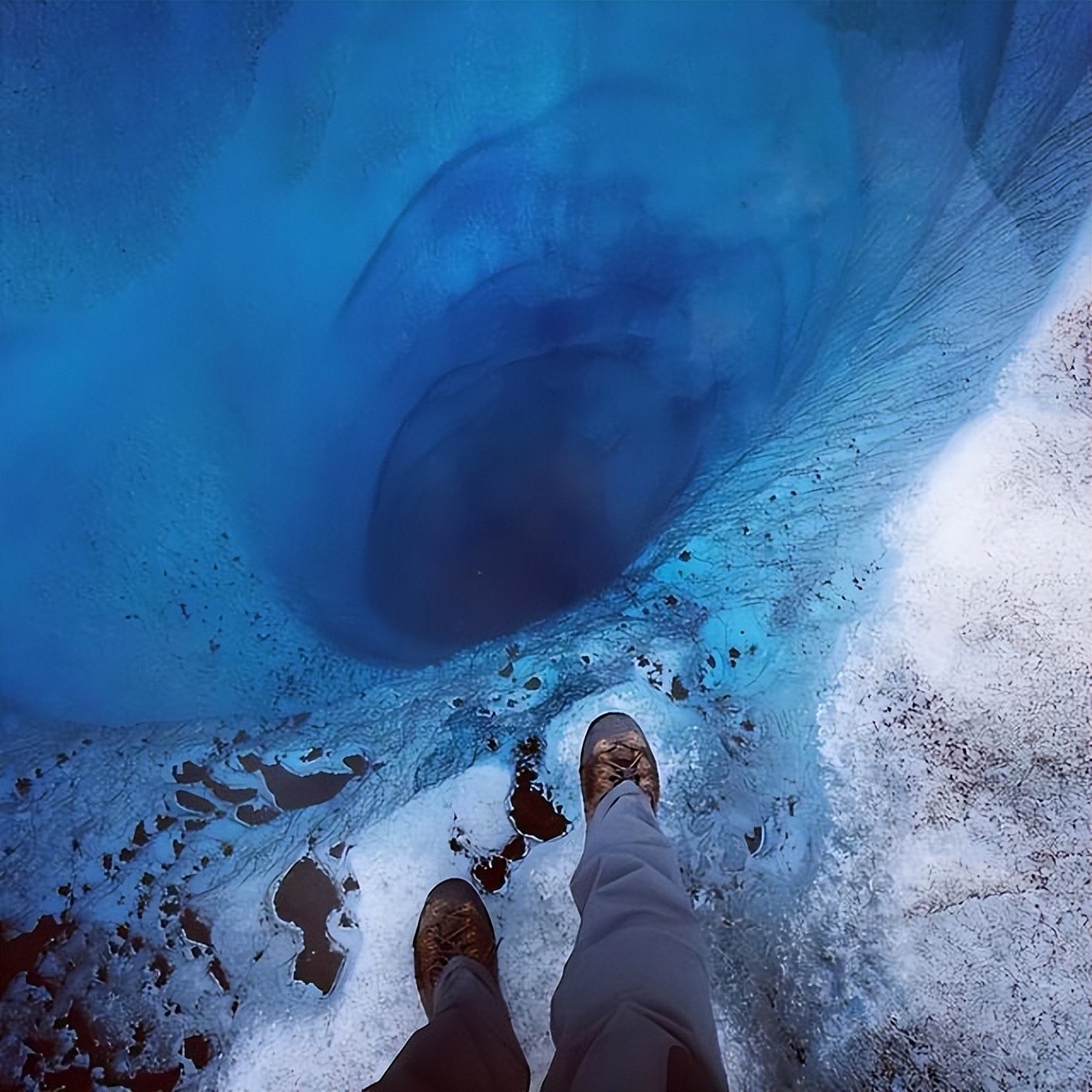 19.凝视下冰川蓝色冰层中一个深不见底的虫洞