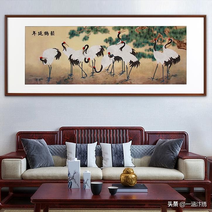 松鹤在传统文化中被视为长寿的象征,因为松树长青不衰,而仙鹤则被称为“寿鸟”。此外,“延年”二字则代表着长寿、健康、平安的美好愿景。像这款手工刺绣松鹤图,绣娘将针线运用得出神入化,使松鹤形象栩栩如生,整幅图色彩搭配和谐,线条流畅,有着极高的视觉美感度,送给老人不仅能传达长寿、健康的真诚祝福,而且这幅作品还可以作为装饰,为老人的居室增添一份雅致与生气。