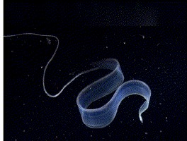 初见柳叶鳗,你一定会被成年鳗那清纯中透着妖娆的身姿所迷住,全身透明干净,如果放入水中,不稍加注意,还看不到它的身影。