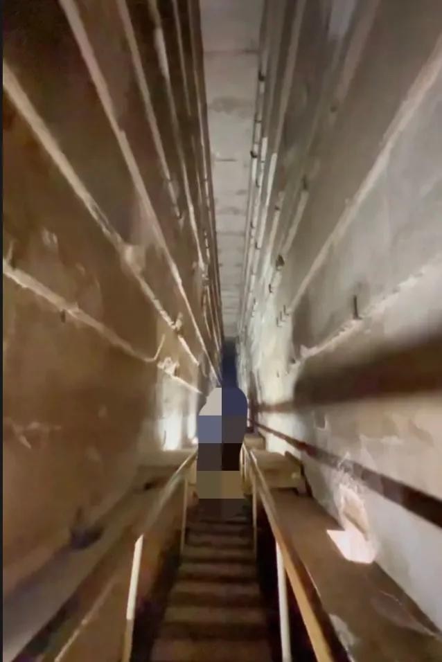 楼梯趴了一会后,经过一个转弯突然来到一片开阔地段,高度有几十米,终于不用弯着腰爬楼梯了!