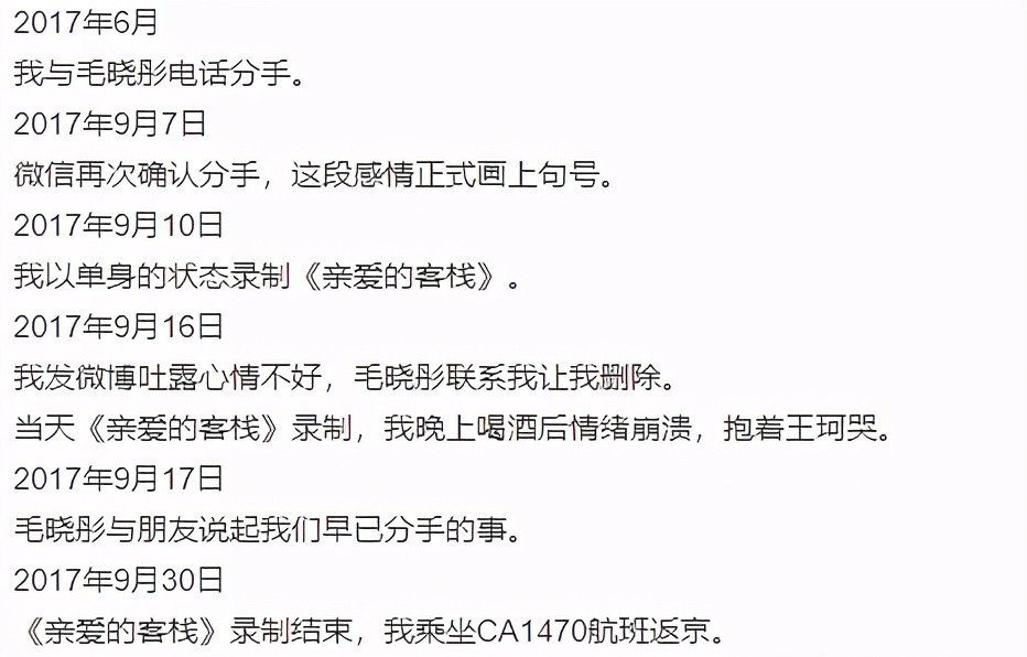 在文中他表示,其实他与毛晓彤早在2017年6月就已经分手。
