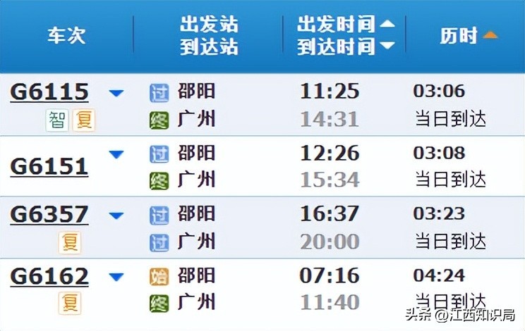 目前,邵阳站至广州站每天有4个车次的高铁,其中,只有G6162次列车为始发终到站列车。