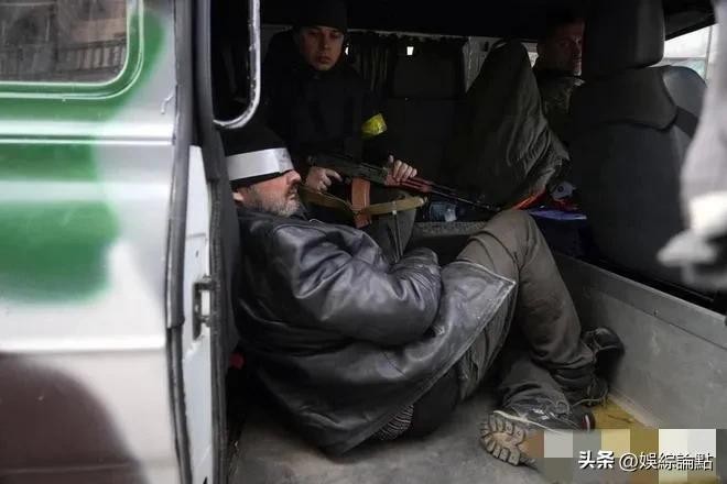 2022 年 2 月 27 日,星期日,乌克兰军人在基辅押送一名疑似俄罗斯特工