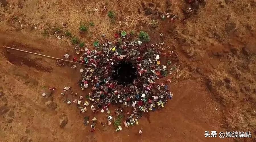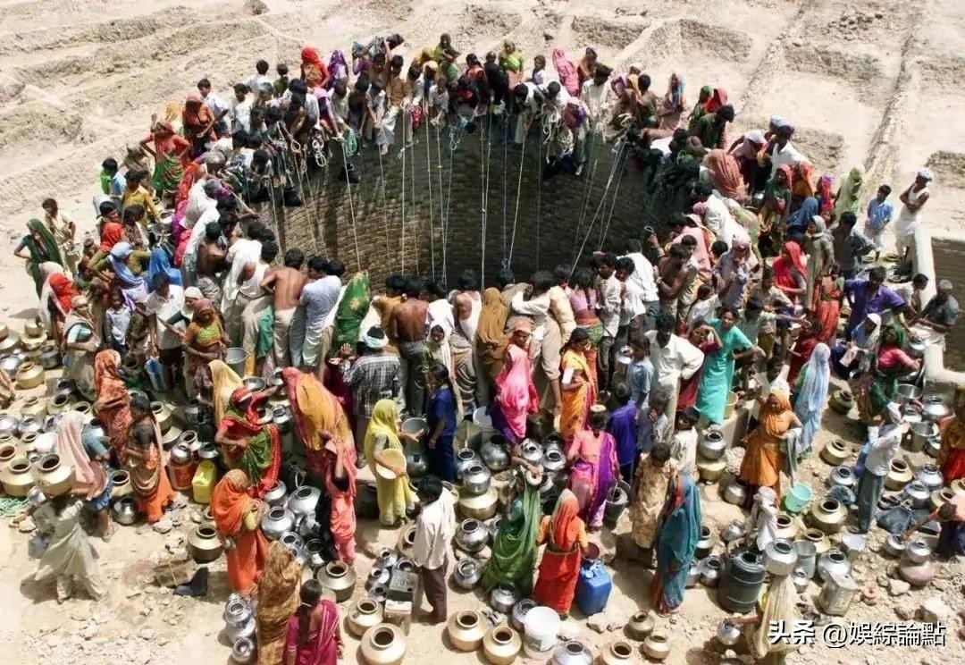 印度西部古吉拉特邦,Natwarghad村巨型井旁,人们排队取水,场景如末日灾难片。