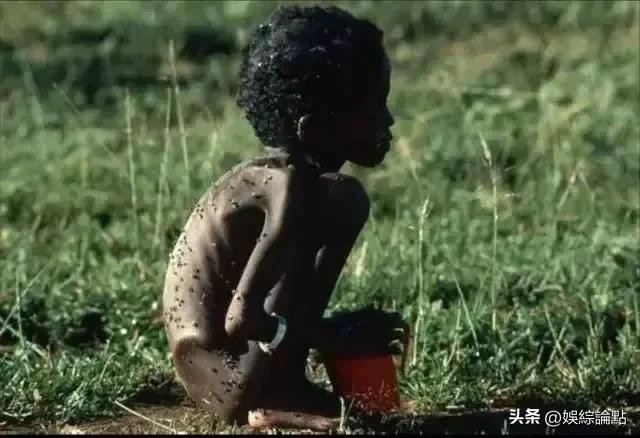 苍蝇的盛宴,他接近死亡的身体,变成了大群苍蝇的食品,这是一名埃塞俄比亚难民营里的孩子,他实在虚弱到无法起身去寻找食物了。他接近死亡的身体变成了大群苍蝇的美食。