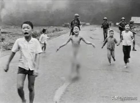 这是一张最著名的越战照片:遭遇美军的凝固汽油弹袭击后,一群越南孩子在公路上惊慌逃跑。中间的小女孩全身赤裸,她双臂伸开,满脸痛苦和惊恐。这张照片被称作《战火中的女孩》或者《火从天降》。