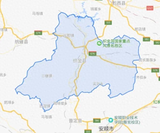 织金县位于贵州中部偏西,是毕节市下辖县,在毕节市和安顺市中间,处于乌蒙山区向黔中山原的过渡地带。从水系上来看,织金又处于乌江上游支流六冲河与三岔河交汇处的三角地带。