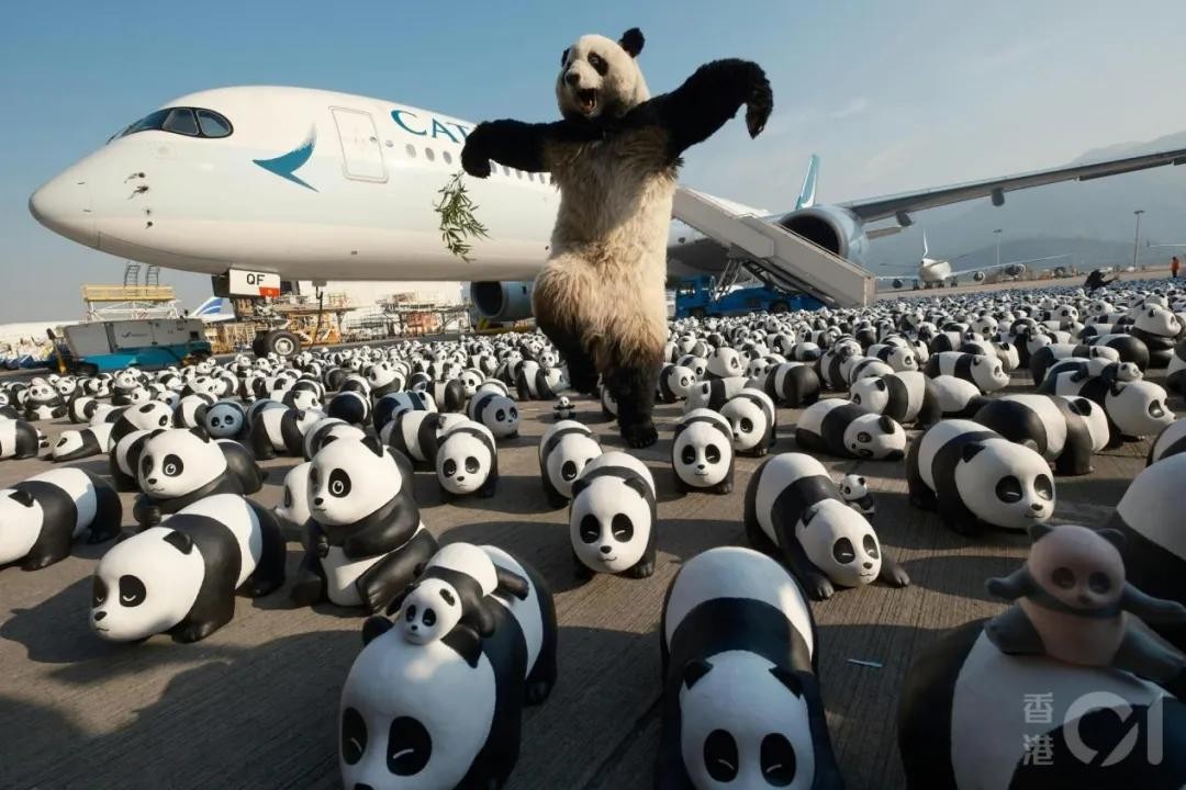 香港最大型熊猫展览《PANDA GO!香港游》明天(7日)启动,2500只大熊猫雕塑已经在2日空运抵港。在当日的机场迎接活动中,出现了一只仿真熊猫“PANDA GO! GUIDE”。仿真熊猫由曾设计日本著名英雄角色“超人ZERO”的皮套制作家冈部淳也制作。冈部淳也透露,这个仿真熊猫皮套,造价相当于一部法拉利跑车。活动主办单位AllRightsReserved 特别安排“PANDA GO! GUIDE”于7日中午12时后现身展区,让市民游客一睹它的真身。