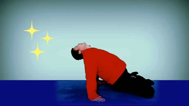 3单盘当中来个婴儿式放松吧:挺直腰背,深呼吸,呼气时,上半身贴紧在双腿上,前额尽量贴近垫面,尽量给气排空,双手自然放置。伸展了背部和颈部,有缓解颈部和背部疼痛的功效,同时还能缓解压力,消除疲劳,平和内心。