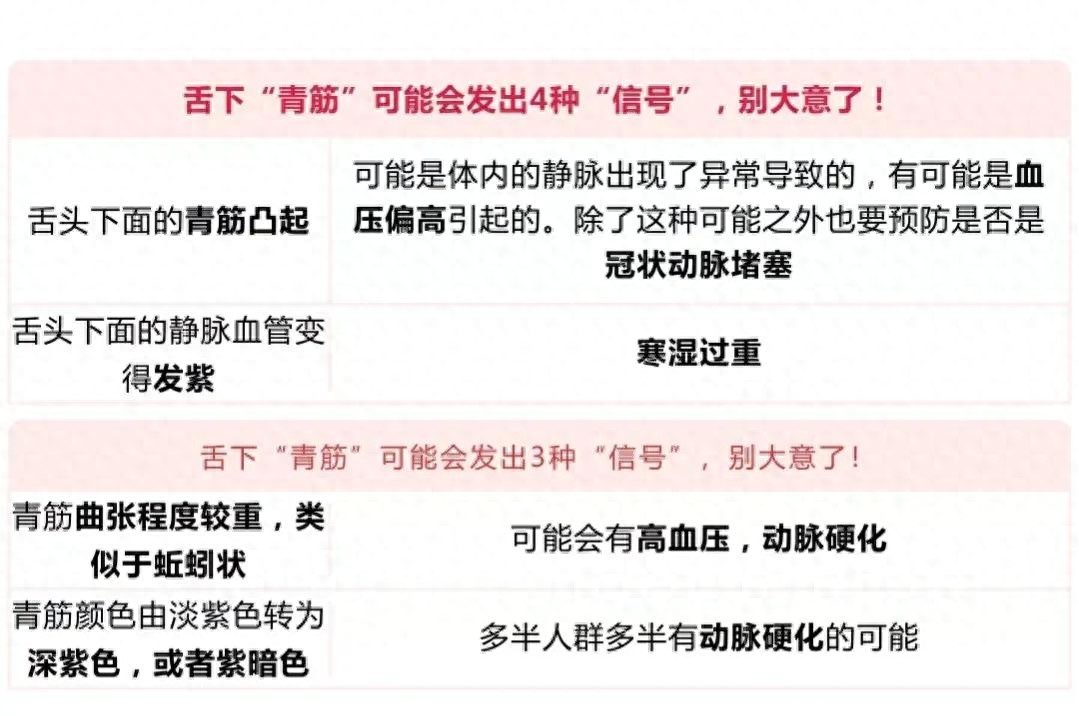 照镜子,看看舌下有青筋吗? 2025-12-27 13:29 点击: 来源:皮坤网 摘要:照镜子,看看舌下有青筋吗? 舌下“青筋”可能会发出种“信号”,别大意了!可能是体内的静脉出现了异常导致的,有可能是血舌头下面的青筋凸起压偏高引起的。 照镜子,看看舌下有青筋吗?舌下“青筋”可能会发出种“信号”,别大意了!可能是体内的静脉出现了异常导致的,有可能是血舌头下面的青筋凸起压偏高引起的。 相关标签: 上一篇:喜欢美食又爱做菜的你,这些香料你都认识吗?香料大全来了 下一篇:中国姓氏有多少