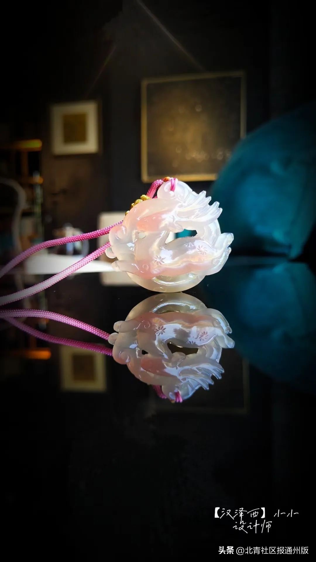 该作《九色鹿》,材质:非洲南红,原稿设计:王允允8岁,公益玉雕师:黄杏